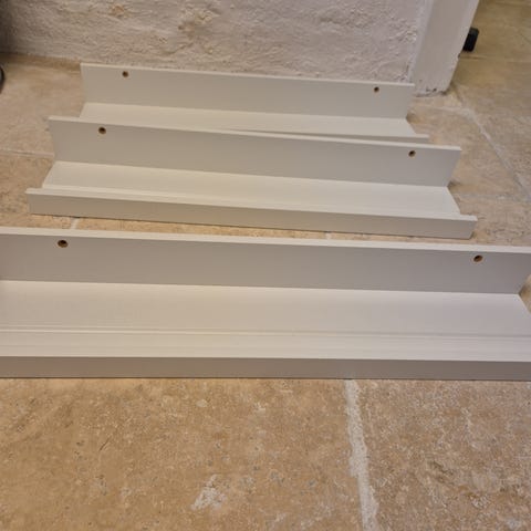 Der er også en enkelt hylde på sidste billede som sælges. Den er også fra ikea men er med mærket Ribba på 115 cm. 45kr.