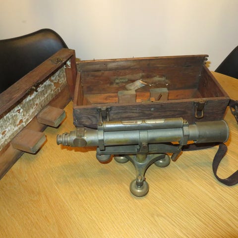 Andre samleobjekter, Nivelleringsapparat, Level Niveller måle instrument Kern Aarau nk2 med waterpas +/- 1950