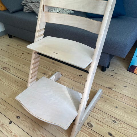 Stokke Tripp Trapp højstol i træ. Denne stol er designet til børn og giver en ergonomisk siddeplads. Den justerbare højde og dybde gør den velegnet til børn i forskellige aldre. Fremstillet af holdbart træ, hvilket sikrer langvarig brug.
