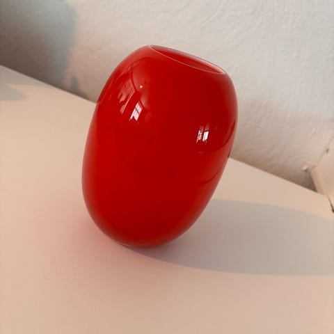 Rød vase designet af Piet Hein. Elegant og enkel i form-klassisk dansk design.