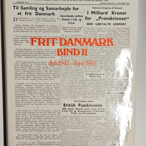 Frit Danmarks hvidbog, -, emne: historie og samfund, Besættelsestiden i dokumenter og kommentarer. 1945. Bind 1-2, hft – NB: tidligere biblioteksbog, brugsspor
