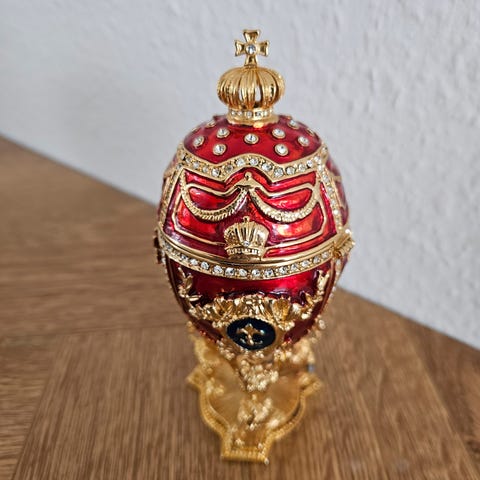 Måler 16 cm - selve åbningen på ægget måler 9 cm.