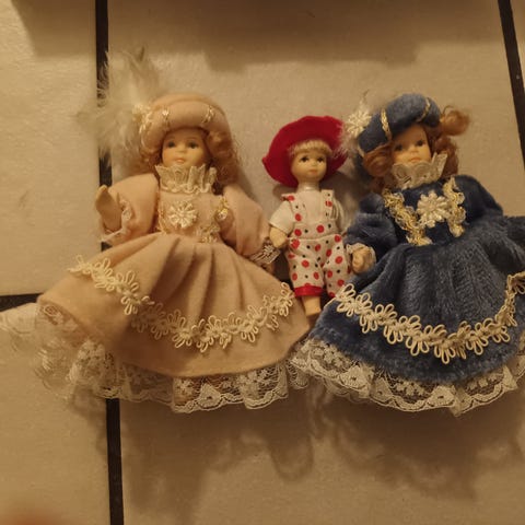 ANTIKKE GLAS FIGURER EVT TIL SÆTTEKASSE/DUKKEHUS