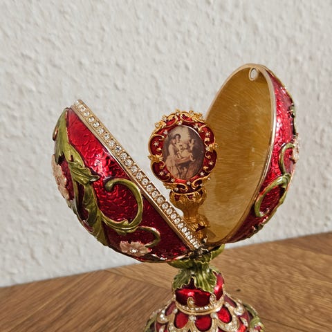 Selve åbningen på ægget/ skrinet måler 6 cm og med det fineste perlemor.