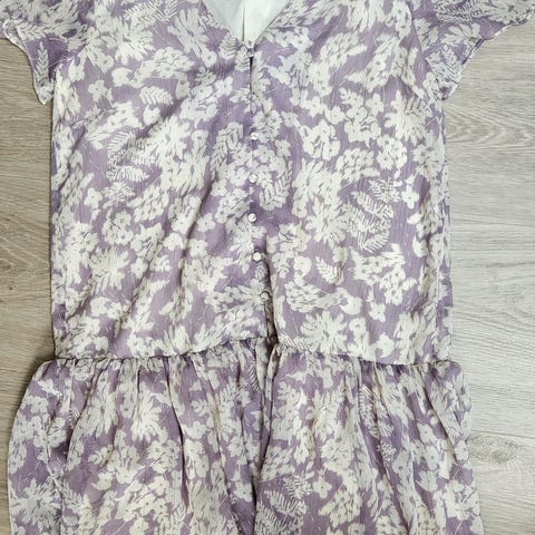 Smuk kjole i skinnende sølv stof - str. L. Brugt enkelte gange og i flot stand. Normal i størrelsen og flot figursyet. Eneste brugstegn er ved lynlåsen, hvor stoffet har udvidet sig lidt, men det er virkelig ikke noget man ser. Fun fact: Købt i Boulder, Colorado. Fra dyre- og røgfrit hjem.
