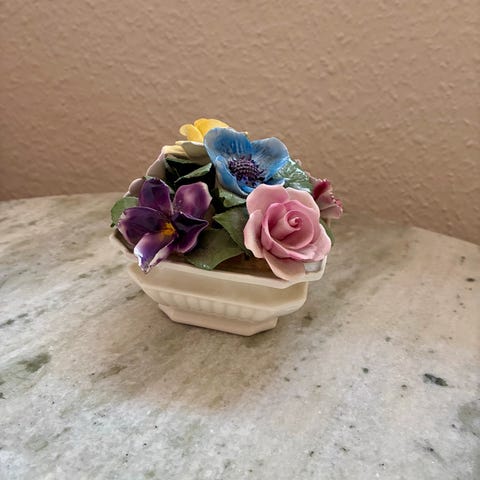 Super fin gammel vintage blomsterkurv i sarte grønne farver