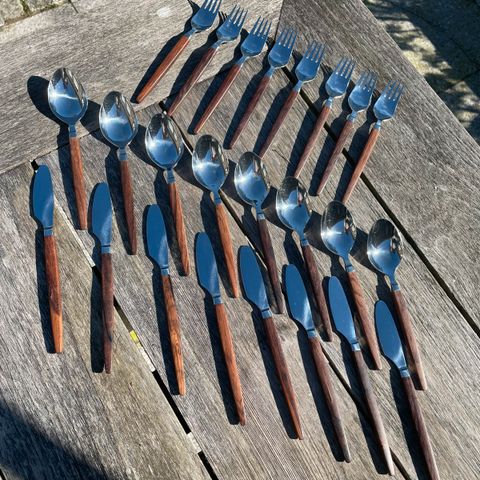 12 Eton Raadvad knive i rustfrit stål, skaftet er af palisander.