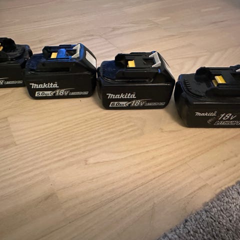 Makita akku boremaskine, lader og batteriholder. Har 4 stk. Pr. stk. 50 eller bud,- kan sendes på købers regning