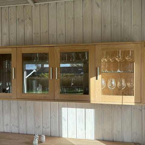 Vitrineskab, b: 170 d: 35 h: 52, Ny ubehandlet hængevitrine i massiv egetræ