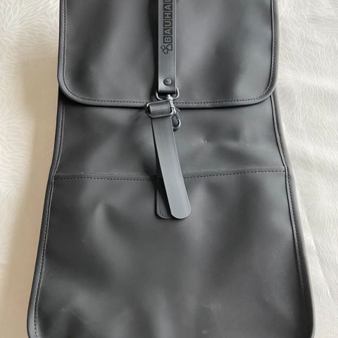 Helt ny og ubrugt sort Backpack fra Rains, med firmalogo tryk.