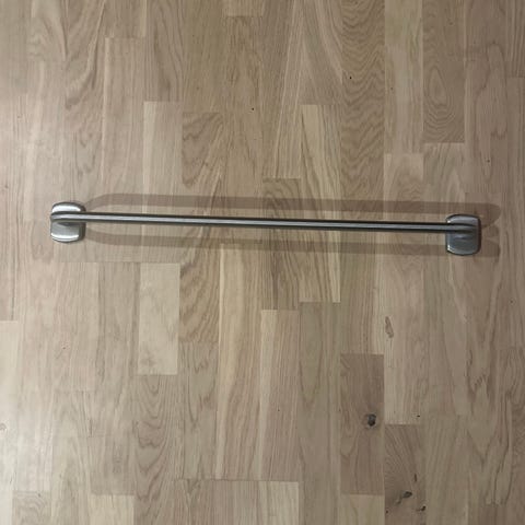 Svingbar håndklædestang i poleret krom med plads til to håndklæder. Skjult montage. Skruer medfølger ikke.