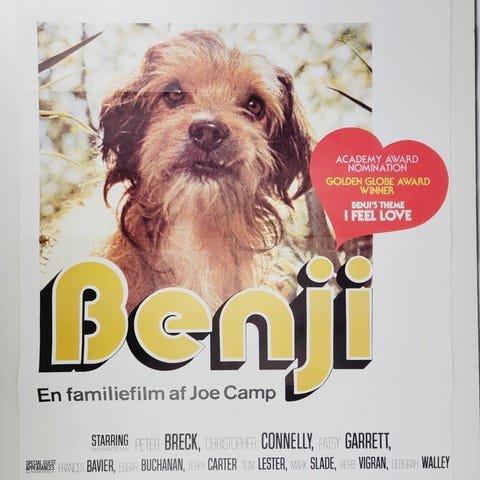 Original vintage plakat, Lassie - Verdens bedste hund, b: 62 h: 85, Original plakat til “Lassie - Verdens bedste Hund”. Dansk førstepremiere i 1979. En rigtig klassikere.