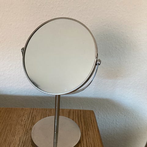 Spejlet er Ø17 cm i diameter og 35 cm høj