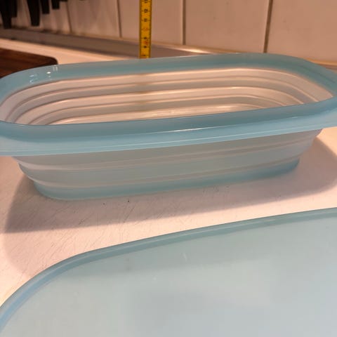 4 Tupperware baby tallerkener/ skåle med låg samt stor Tupperware skål til microovn med klik øre, der gør det nemt at åbne låget.