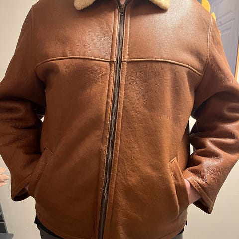 Virkelig fin pels til vinterdage. Gode lommer foran. Den er gået i syningen under det ene ærme-for samt i det ene hjørne af den indvendig lomme. Det ser ud til at foret drypper lidt forneden. Se billeder.
