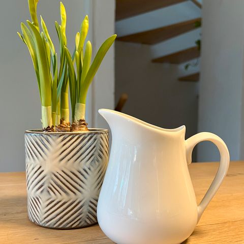 Hvide mælkekander, flødekander i porcelæn.