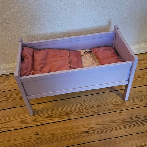 fin antik dukkeseng ca 50 cm lang. parat til at modtage en smuk dukke med luk selv øjne