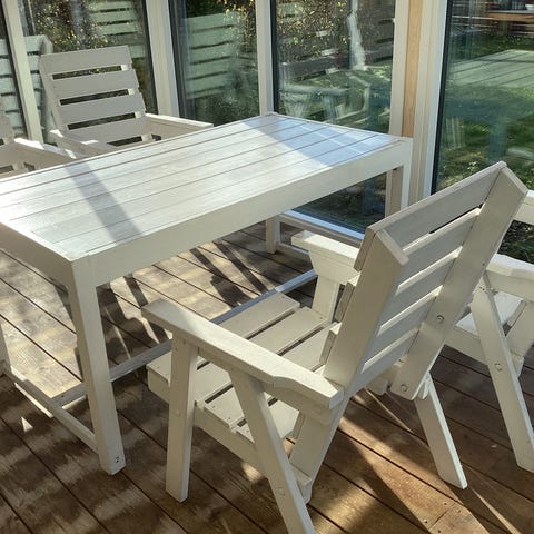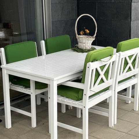 Hvidt træ havemøbelsæt med bord og stole