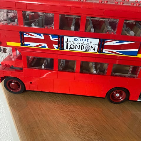 LEGO Exclusives, 853914 LEGO London bus magnet. Består af en magnetklods 4x4 og løse elementer samt klistermærker.