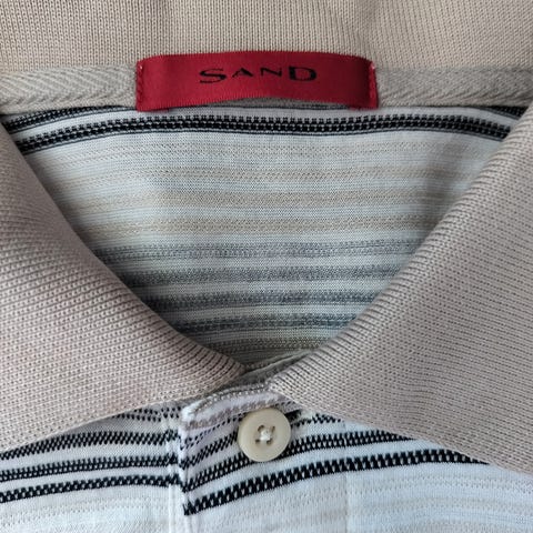 Herre SAND poloshirt str L i gyldne farver og koksgrå krave