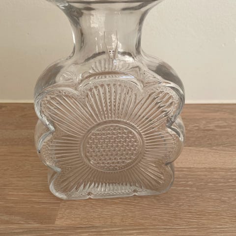 Rillet vase af P.Davesn, fransk glasmager oplært af Rene Laliq. Værdi ca 5000kr. Vejer 1741g den har et lille afslag, ses næsten ikke og skære heller ikke. Deraf prisen