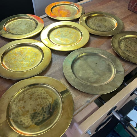 Massive messing dæktallerkner 4 stk.