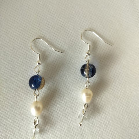 Nye Elegante Sølv øreringe med blå blomster og en fin perle