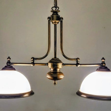 Hvis god stand kan byttes ned 5 armet PH. Bombardement lysekrone fra 30’erne i bakelit med hvide intakte skærme.