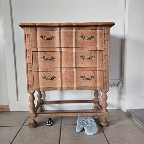 Lille skuffemøbel, kalkmalet, legetøjsmøbel, købmandsdisk