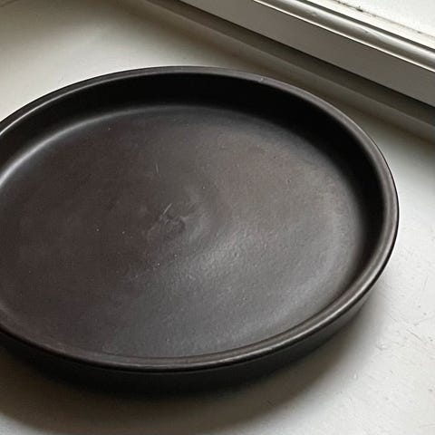 Antikt håndmalet fad i mørkeblå. Signeret bund. Det har en lille revne - se det sidste billede - og guldkanten er falmet. Ellers fin stand. Se billeder for mål.