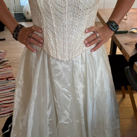 Kjolen er syet til, men den passer S/M og er lidt større ved barmen.