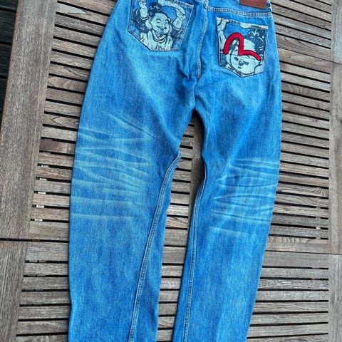 Evisu mørkeblå denim jeans