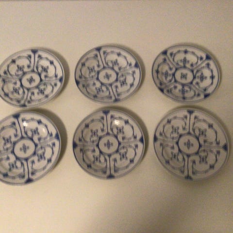 3 super fine side-tallerkener, fra Tyskland. Med smukke musselmalede detaljer.