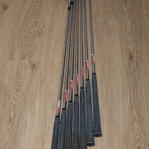 Wilson Staff D9 jernsæt med grafitskafter. Sættet består af flere jern med cavity back-design, som giver en tilgivende kølleflade. Skafterne er Mitsubishi Chemical AV Series 60 med flex R. Hovederne er i metal med klassisk sølvfinish. Velegnet til golfspillere, der ønsker et komplet sæt jern med grafitskaft.