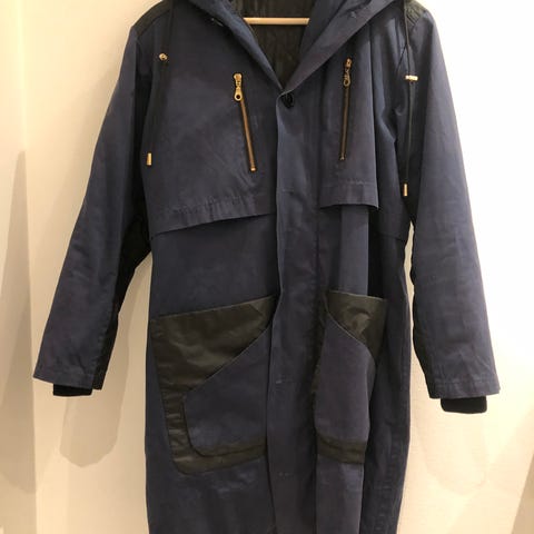 Unik og stilfuld frakke i beige med sorte blonde-detaljer.