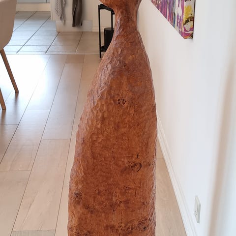 Et sjældent stykke kunsthåndværk, der både skaber blikfang og atmosfære – perfekt til dig, der elsker unikke træskulpturer med historie.