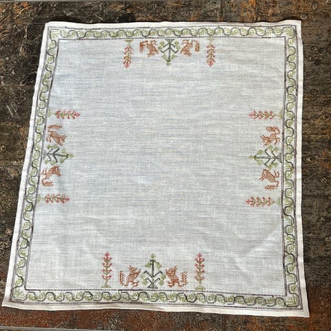 Broderet dug med blomster måler ca. 80 x 80 cm