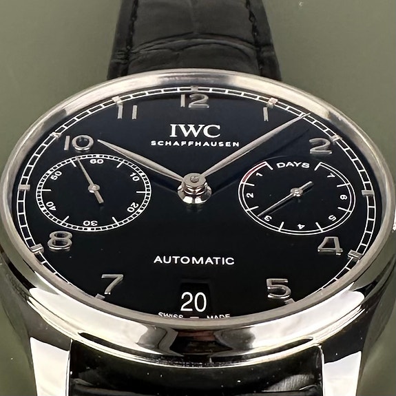Remmen er en ny sort original alligatorrem med stålspænde. Der medfølger en ekstra ny brun læderrem (no brand).