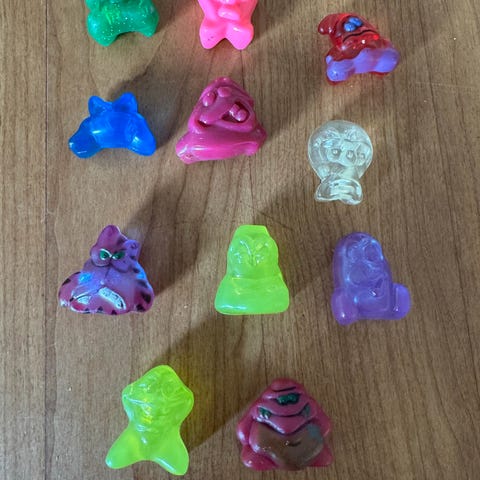 Nogle få Dracco heads Bla SLEEPY KLAR RØD og nogle jojo’s fra 1990 Erne.