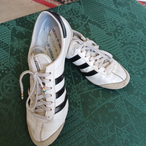 Grå Adidas sko, som kan bruges til træning eller almindelig brug.