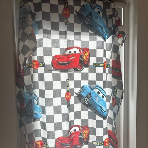 Hyggeligt og sød gardin til børneværelset med motiver fra Cars - i rigtig lækker kvalitet.