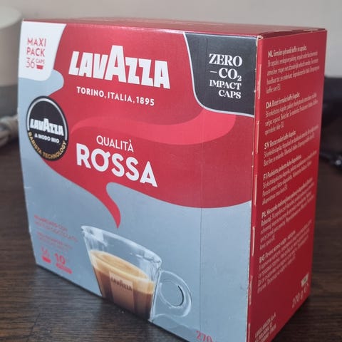 Inklusiv mange kasser med kaffekapsler..