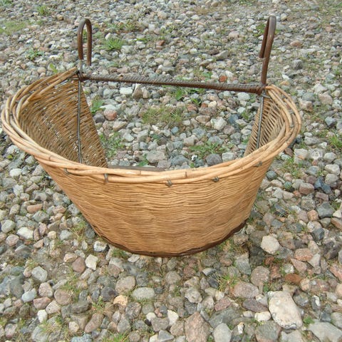 Flot retro cykelkurv i lys flet med kroge til montering på cyklen, håndtag og forstærkning i bund