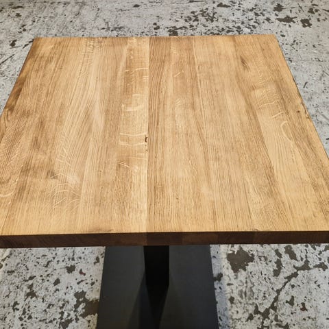 cafebord massiv bordplade 60x70 , sort støbejernssokkel, NYT fra udstilling , skønhedsfejl i bordpladem