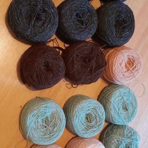 3 farver på garnet se bileder. Det er til pinde 2,5-3-3,5.