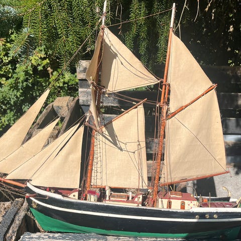 Modelskib i fineste stand. Mål 24cm (L) 25cm (H). Sælges kr 850 eksklusiv fragt.
