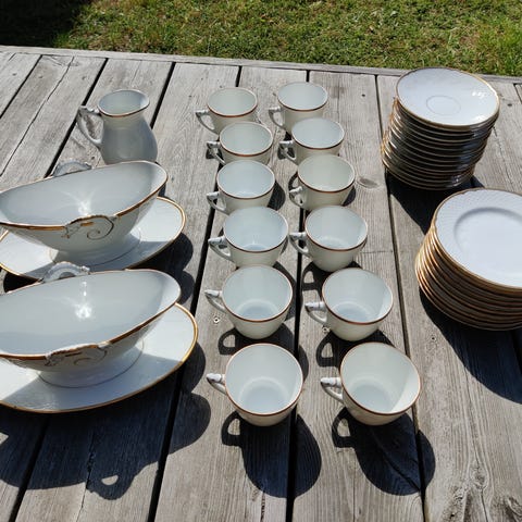 Porcelæn, kopper, bing og grøndahl, 11 kopper nr 102 med underkopper pris 40kr pr sæt. -3stk kage tallerkener pris 30kr pr stk.-------1 sukkerskål med lågpris 135kr. 1 flødekande pris 115kr. 1 fad 27,5cm pris 110kr. Stellet er i hvidt,og er i fin stand.