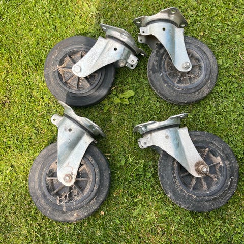 Andet, Stiga, 3 stk. luftgummihjul med tilhørende swivelmonterings gafler.
