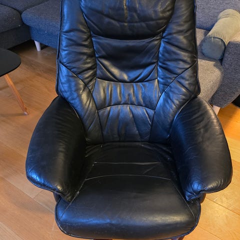 Sort IKEA læderstol med fodskammel