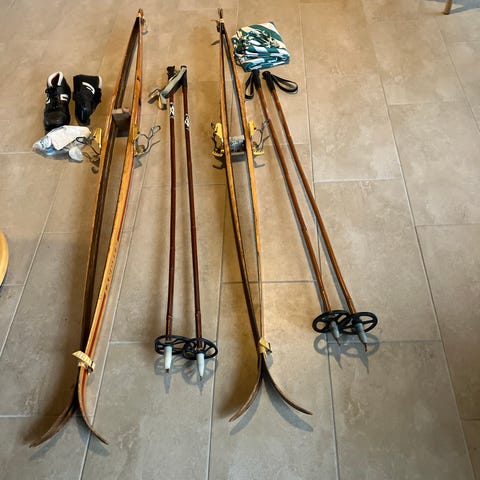Det ene par har aldrig været monteret med bindinger. Det andet par er monteret med ny nordisk bindinger og har kun været brugt i få timer.